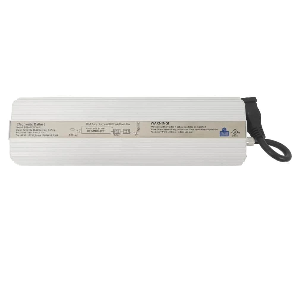 Hydro Crunch 1000-Watt Dimmable Digital Ballast features high power factor, high luminous efficiency, adjustable wattage output, and convertibility between HPS and MH light bulbs for vegetative growth to flowering stages. Run your hydroponic grow lights brighter with this ballast as it supports dual voltage 120-Volt/240-Volt. The high operating frequency not only ensures continuous power delivery, but also has conserving bulb life in mind. As efficient and powerful as it is, its silent operation and light weight design adds to the maximum lumen any plant will ever need.