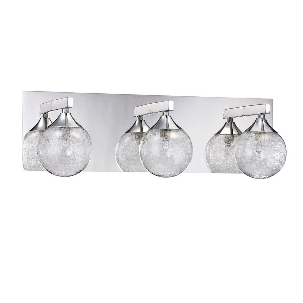 The distinctive appeal of the FYBRA series 3-Light 20 in. Bath light enriches modern interiors. Halogen light dances off stretched glass fibers encased in clear glass globes. A clean chrome finish completes the look while providing 150-Watt of illumination.