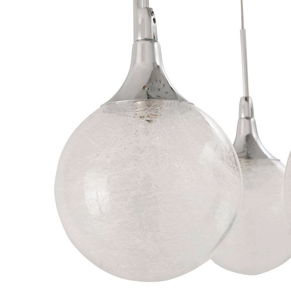 - 4.75 in. Dia shades feature stretched glass fibers encased in clear glass globes